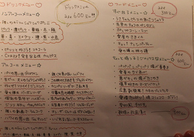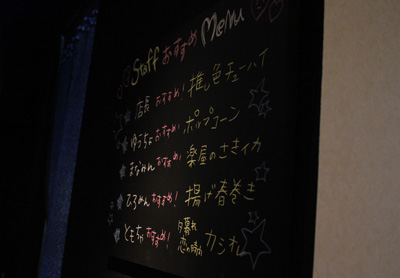 フードメニューはまだ検討中のようですが、ネーミングに工夫の後が見られますね。ビールが「大人のシュワシュワポン」となっていたり、ミックスナッツが「チュッ!ナッツパーティー」となっていたりと、全てハロプロネタで統一されています。(「いじわるしないでモスコミュール」等、とくにかかっていない苦しいものもありますが…。ネタを募集したりしても面白いかもしれません)