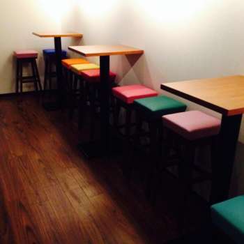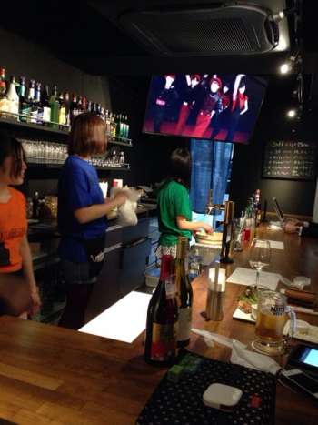 店内は割と明るくて、BARというよりオシャレ居酒屋のような感じですが、入りやすい雰囲気にするためにあえて明るい設定にしてあるのかも知れません。店長さんはホールとカウンターを行ったり来たりして客に声をかけつつ、ドリンクはオーダーを受けたスタッフが作るというスタイル。スタッフは全員女性(ハロプロファン)で、この日は3人。それぞれ推しのメンバーTシャツを着用していました。皆さん本気のハロプロファンなので、ハロプロ関連の話題ならかなりコアな話題でも喜んで応じてくれそうです。